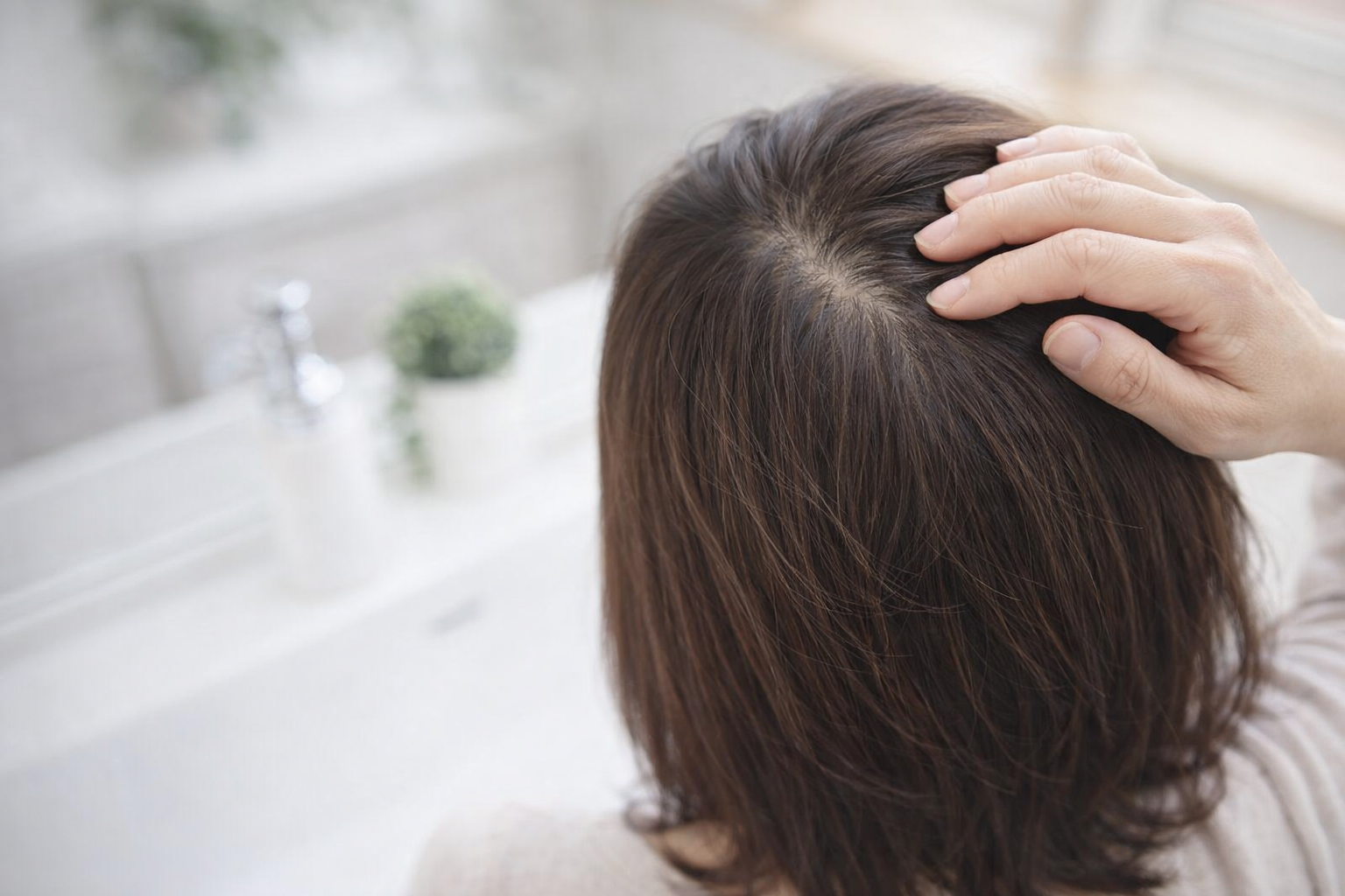髪をとかしたときや、光が当たったときにふと気づく分け目の変化。